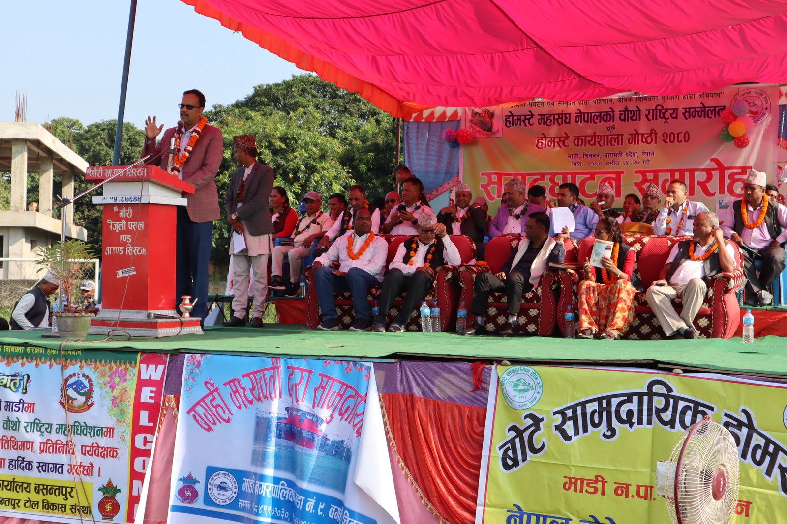 नेपाल होमस्टे महासंघको चौथो राष्ट्रिय महाधिवेशनको समुद्धघाटन माडीको बसन्तपुरस्थित खुला चौरमा भएको छ । असोज २७ गतेसम्म सञ्चालन हुने महाधिवेशनमा देशैभरका होमस्टेबाट प्रतिनिधिहरु माडी आउनुभएको छ ।