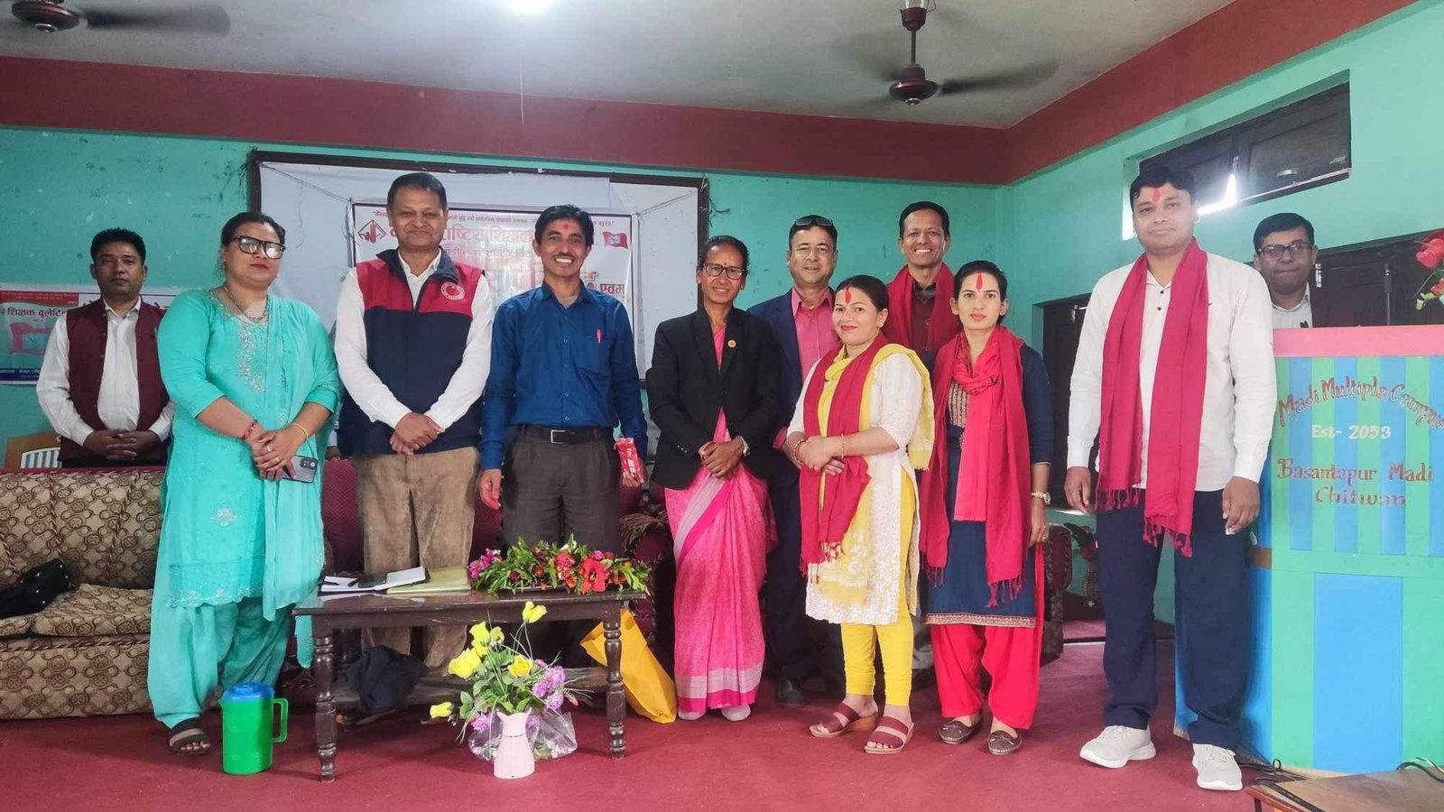 नेपाल राष्ट्रिय शिक्षक संगठन जिल्ला उपाध्यक्ष रामजी भण्डारी , शिक्षक हित वचत तथा ऋण सहकारी संस्थाका सचिव दिपेन्द्रराज रेग्मीको आतिथ्यता सहित माडी क्याम्पसको सभाहलमा भएको सो कार्यक्रम नगरपरिषद् अध्यक्ष रामप्रसाद भण्डारीको अध्यक्षता सम्पन्न भएको हो ।