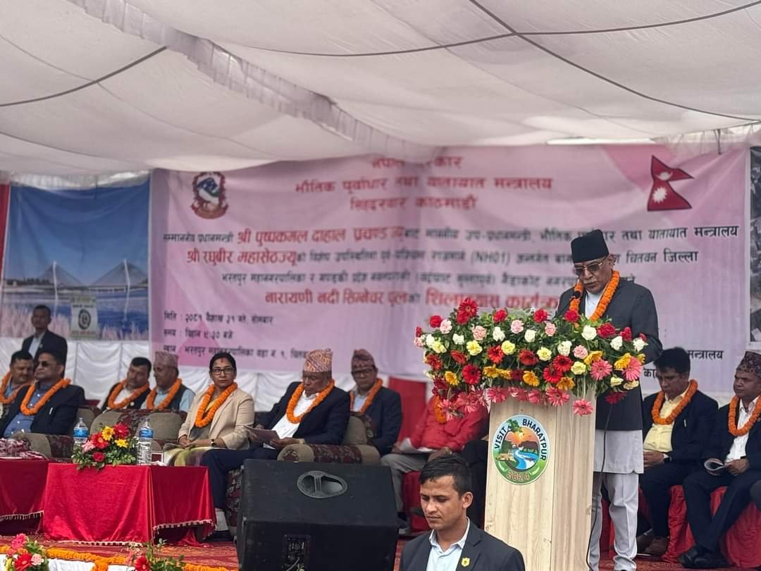 आज विहान चितवनको नारायणगढस्थित नारायणी नदी किनारमा नेपालकै पहिलो सिग्नेचर पुलको शिलान्यास कार्यक्रममा बाेल्दै प्रचण्डले साे कुरा बताउनुभएकाे हाे ।