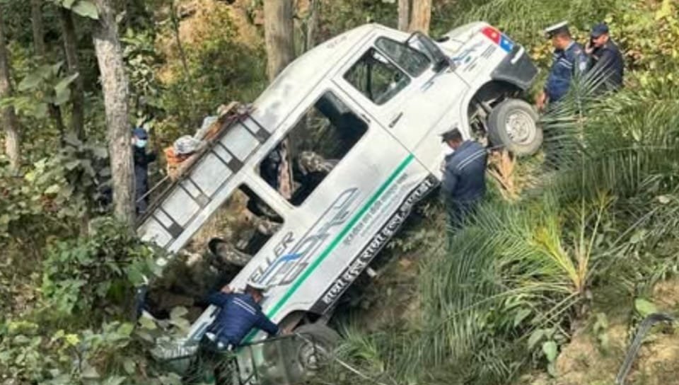 कर्णाली प्रदेश ०२००१ ख ०४९१ नम्बरको फोर्स गाडी वीरेन्द्रनगर नगरपालिका बागेसिमल प्रहरी चौकीदेखि एक किलोमिटर दक्षिण कर्णाली राजमार्गमा दुर्घटनामा परेको हो ।