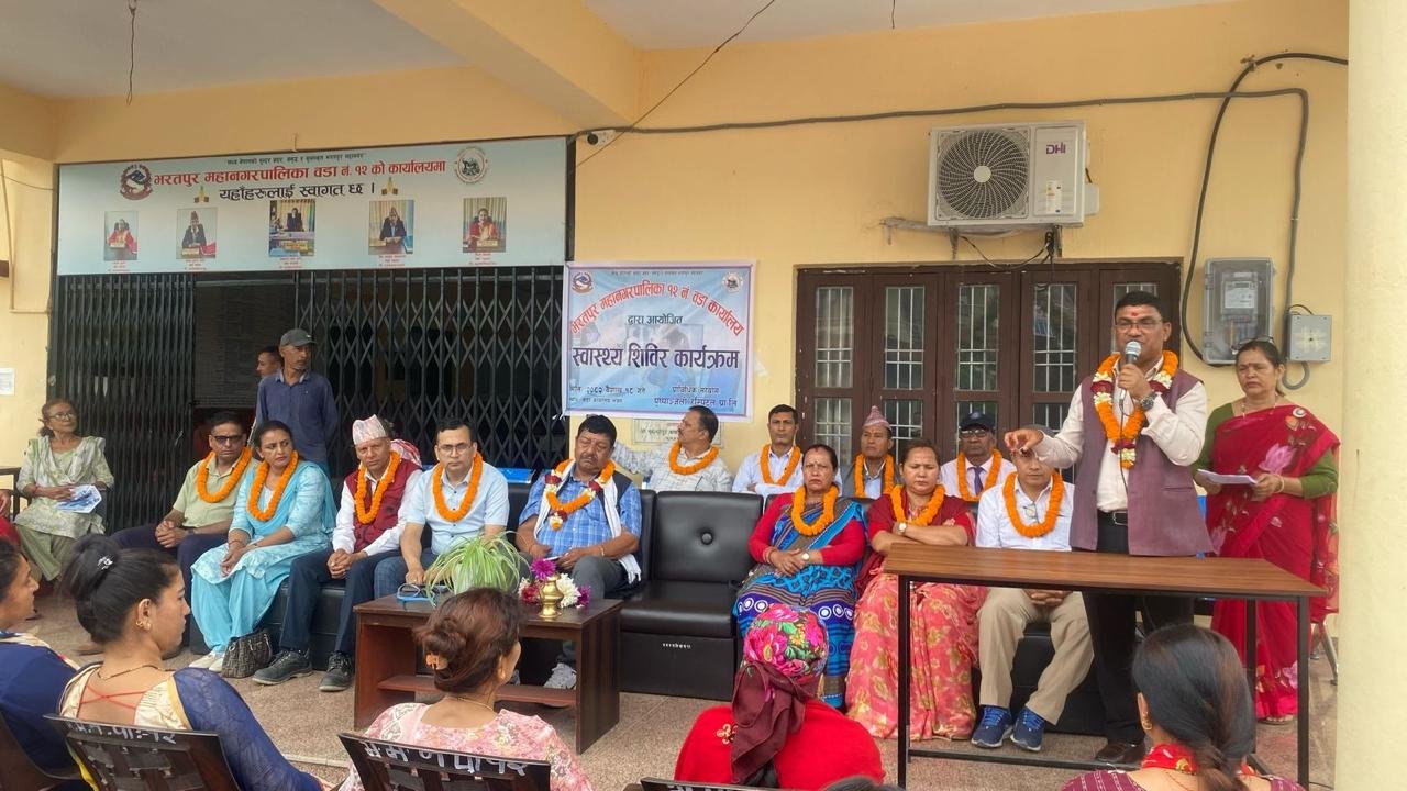 डाक्टर र जनता संगको नाता गास्न आएको बताउनु भयो । बरिष्ठ स्त्री रोग विशेषज्ञ डा. रामप्रसाद सापकोटा, बालरोग विषेशज्ञ डा किरण देवकोटा फिजिसियन डा रिकेस सापकोटा सर्जन डा दिपेश कुमार कुशवाहा , नाक कान घाटी रोग विशेषज्ञ डा लाल बहादुर गुरुंग दन्तरोग विशेषज्ञ डा बिवेक घिमिरे , रेडियोलोजीष्ट डा नरेन्द्र दराई र डा ज्ञानेन्द्र तिमिल्सिना लगायत १६ जना डाक्टर र २० जना स्वास्थ्यकर्मि स्वयंसेविका लगायत पुरै वडा प्रतिनिधि खट्नु भएको शिविरको सभापतित्व वडाध्यक्ष लेखराज हरि पन्तले गर्नु भयो ।