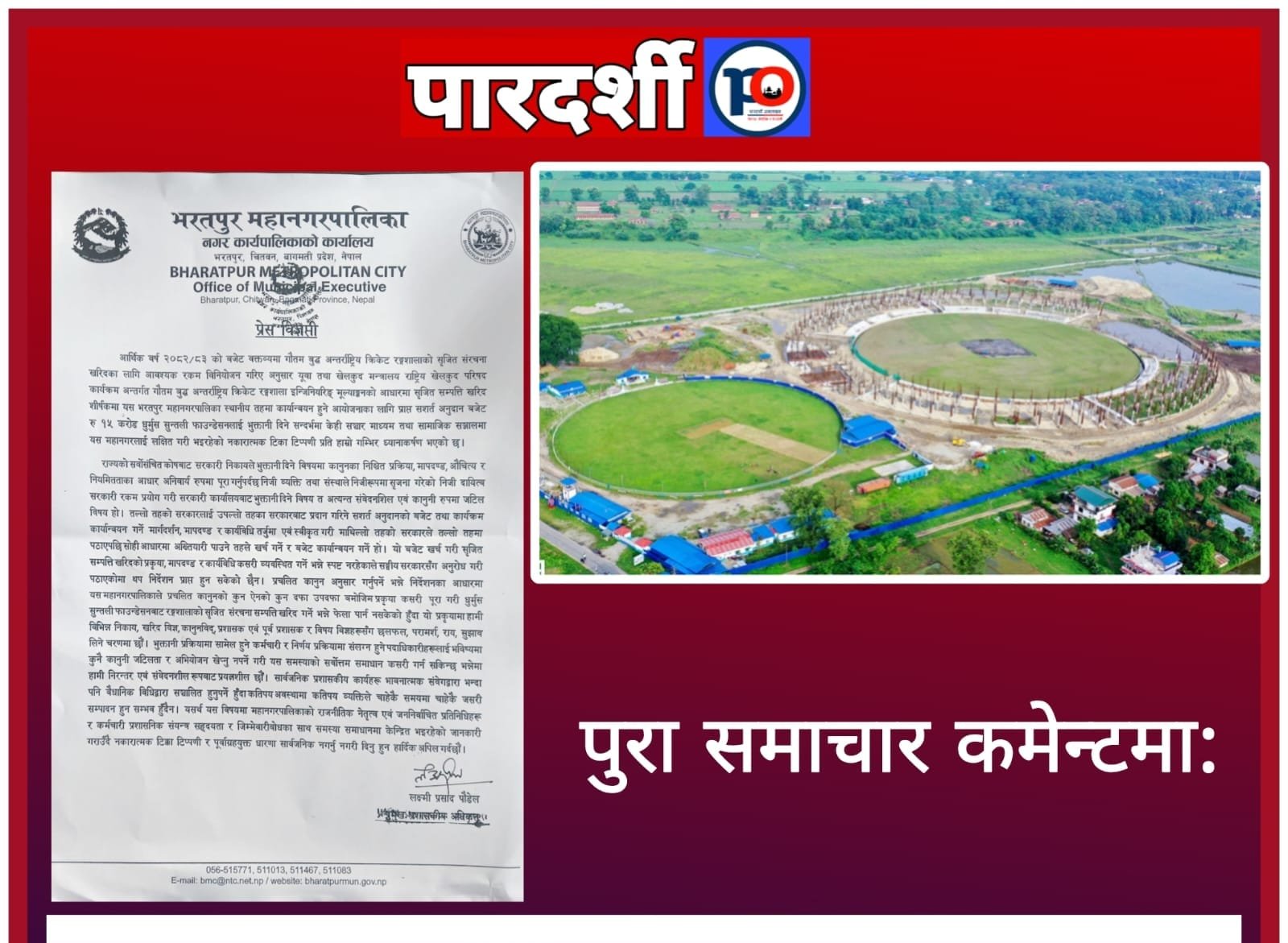 भरतपुर महानगरको क्रिकेट रङ्गशाला सम्बन्धी नकारात्मक टिप्पणीप्रति