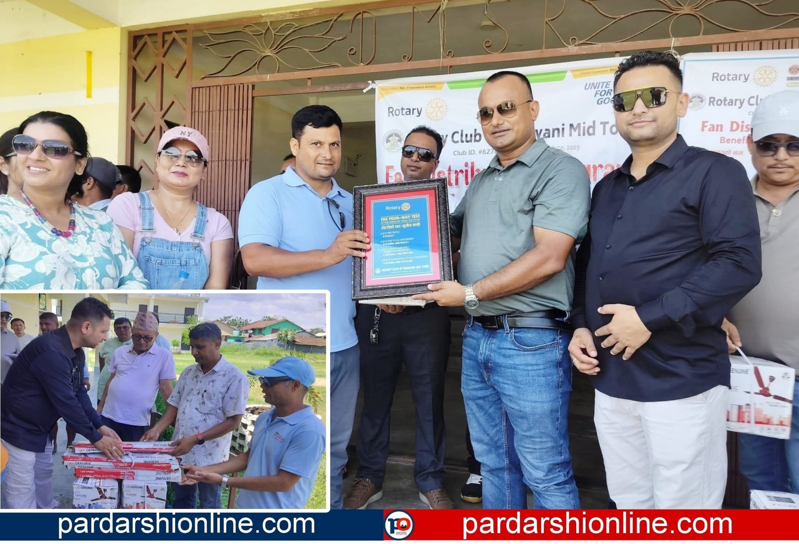 रोटरी क्लब अफ नारायणी मिडटाउनद्वारा विद्यालयमा पंखा