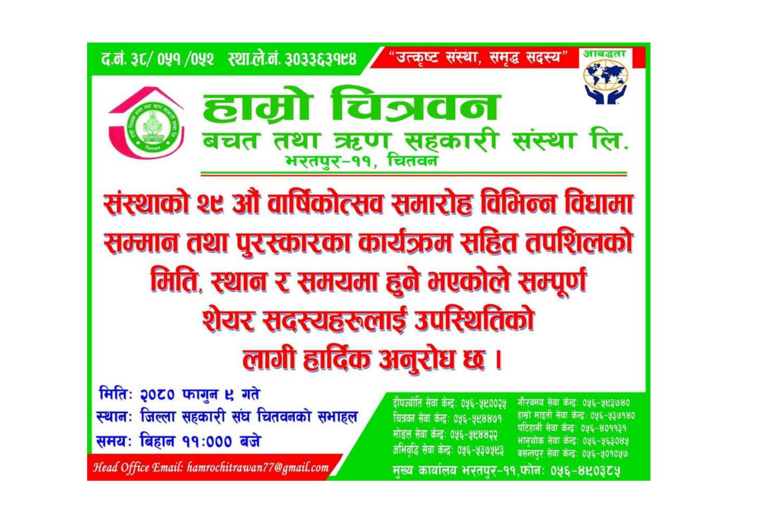हाम्रो चित्रवन साकाेसकाे २९ औं वार्षिकोत्सव जिल्ला