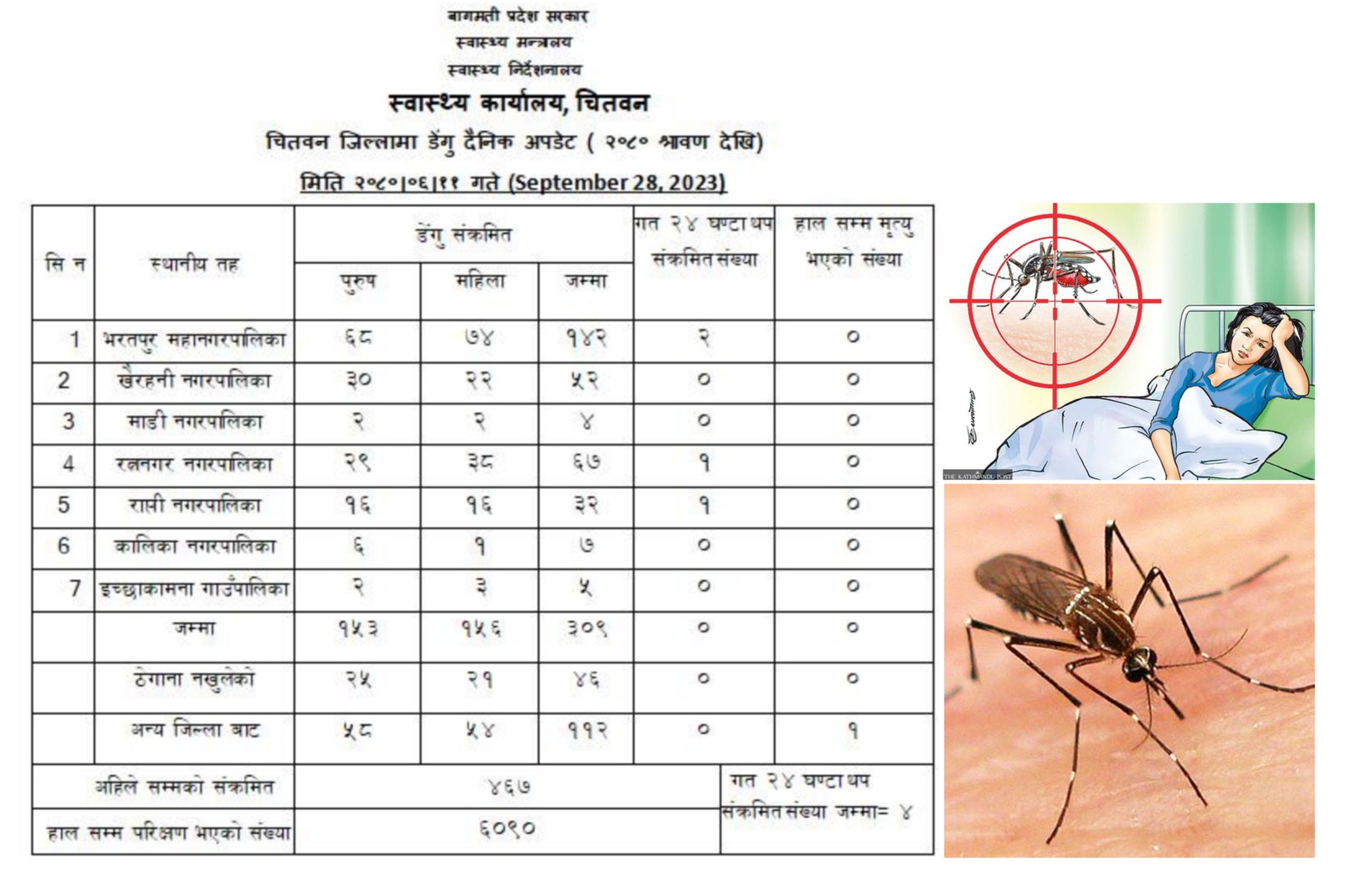 चितवनमा डेँगु संक्रमितको संख्या ४६७ पुग्याे