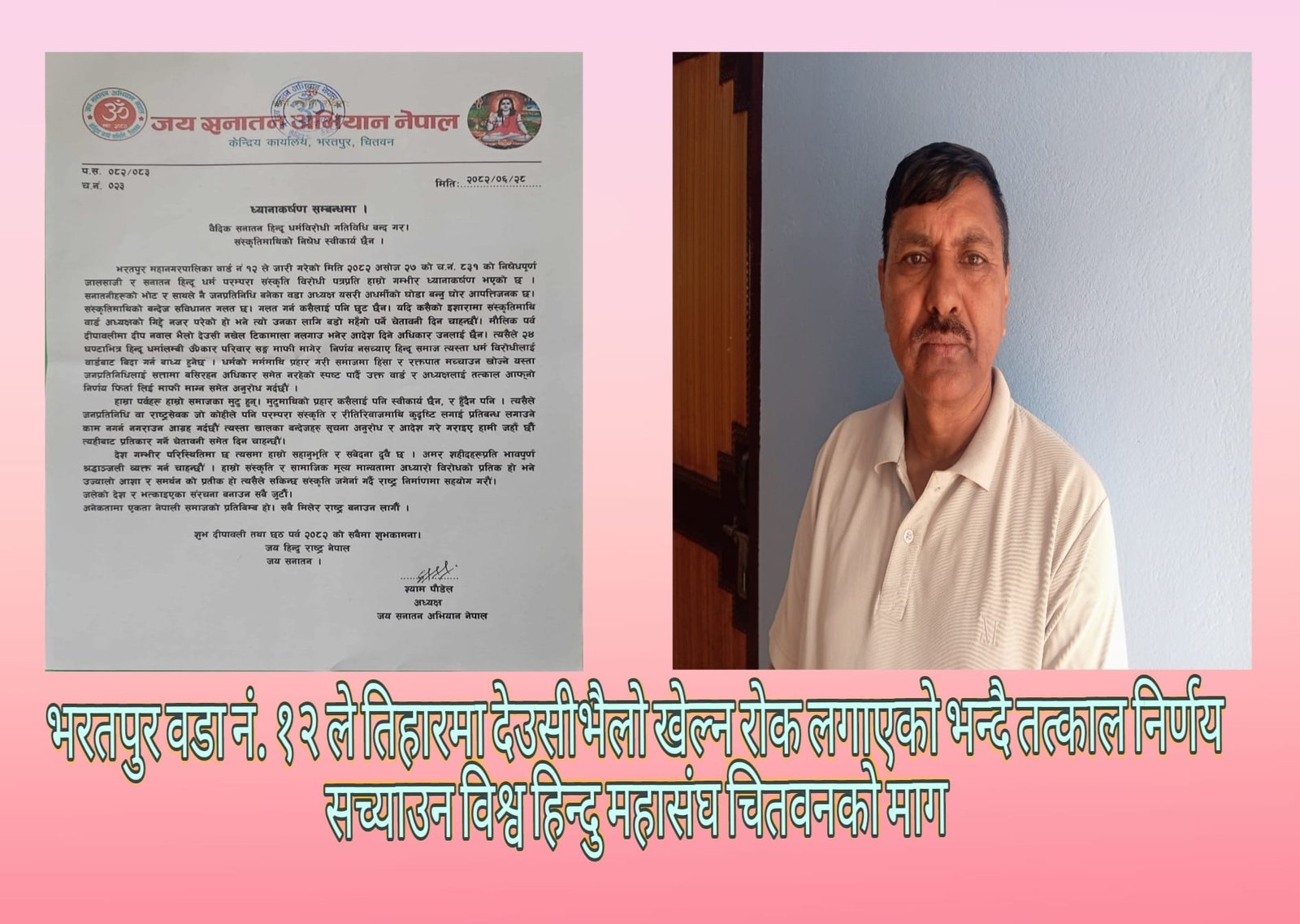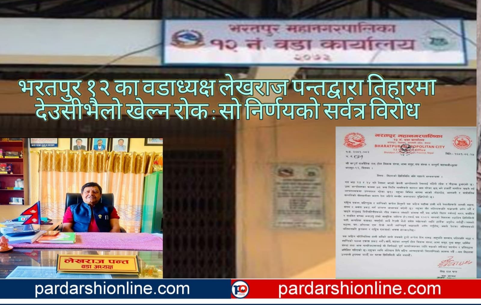 भरतपुर १२ का वडाध्यक्ष लेखराज पन्तद्वारा तिहारमा