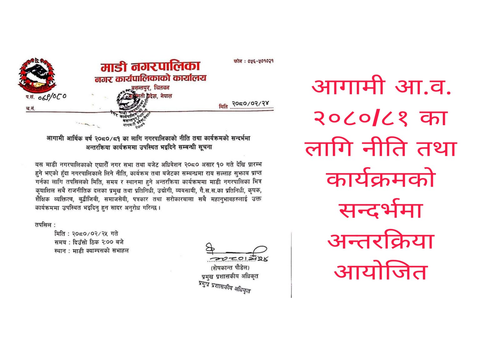 माडी नगरपालिकाले ‘माडी पर्यटन वर्ष’ काे तयारी