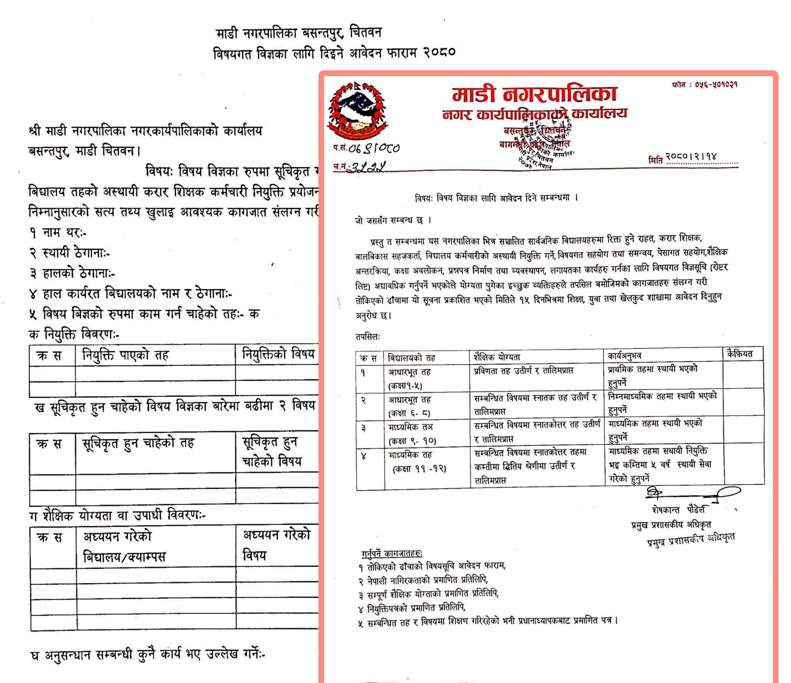 विषय विज्ञका लागि आवेदन दिने सुचना
