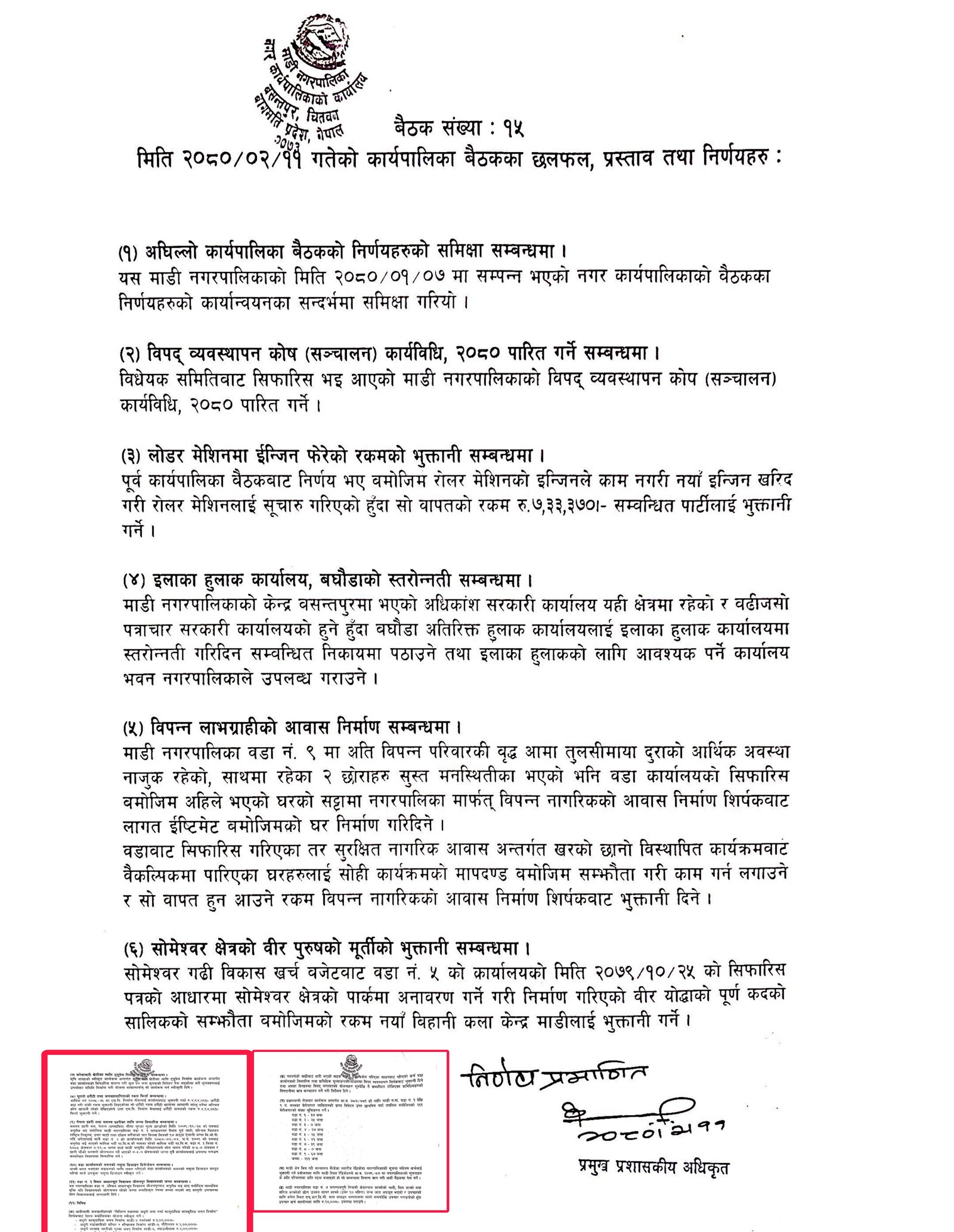 माडी नगर कार्यपालिकाद्वारा महत्वपूर्ण निर्णयहरू पारित