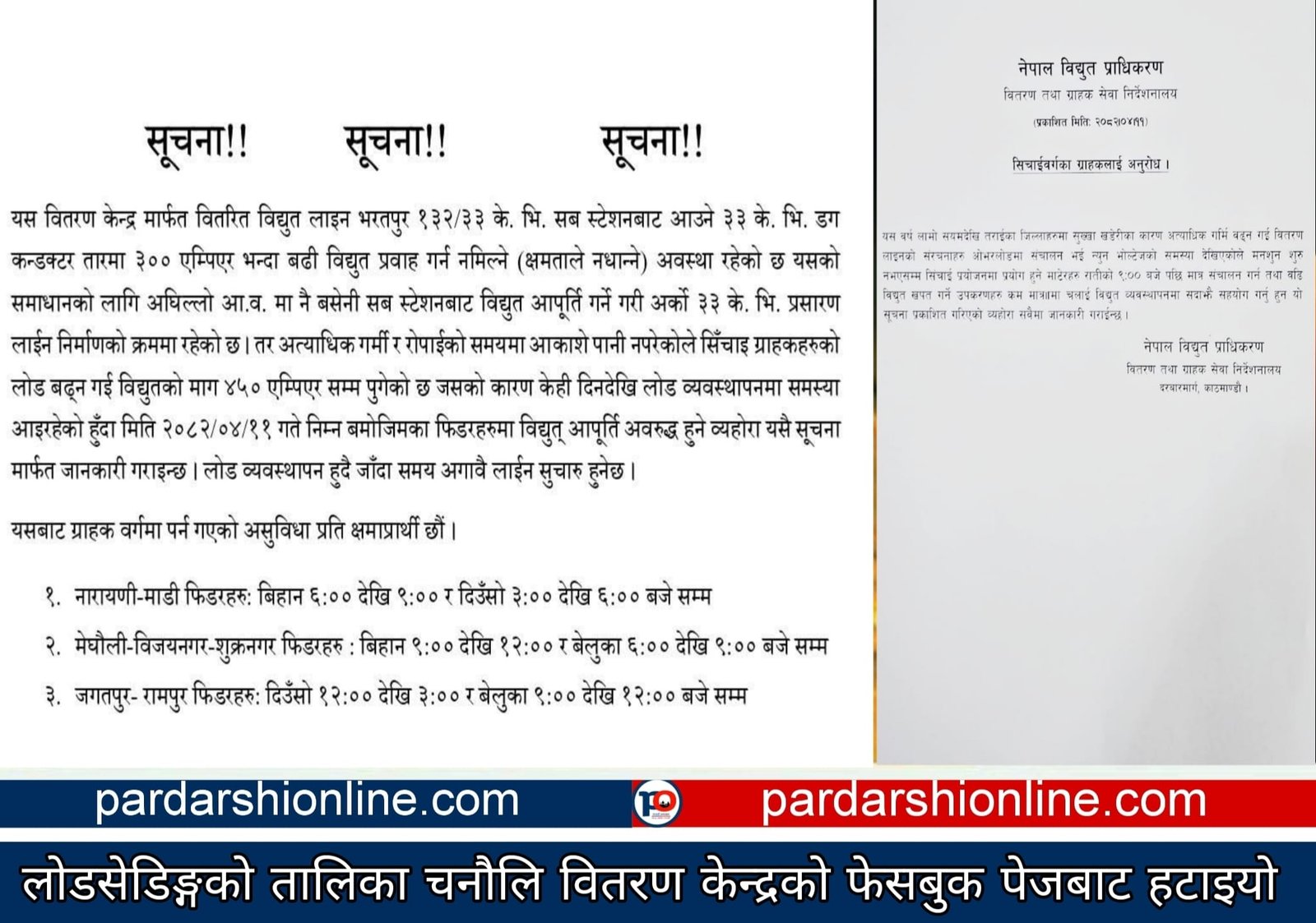 चनाैलि वितरण केन्द्रले जारी गरेकाे लाेडसेडिङ्गकाे तालिका