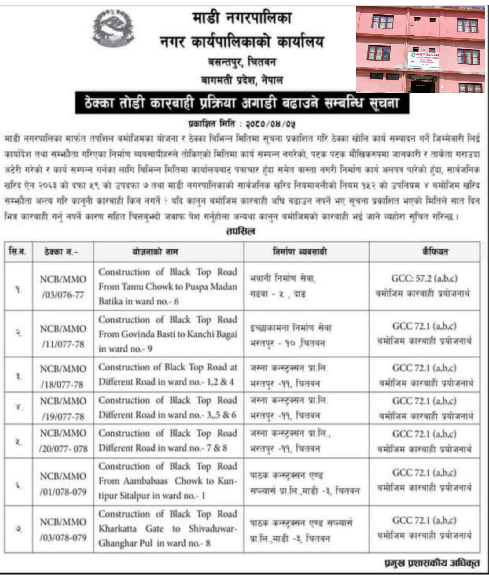माडीका विभिन्न योजना अलपत्र परेका ठेक्का ताेड्ने